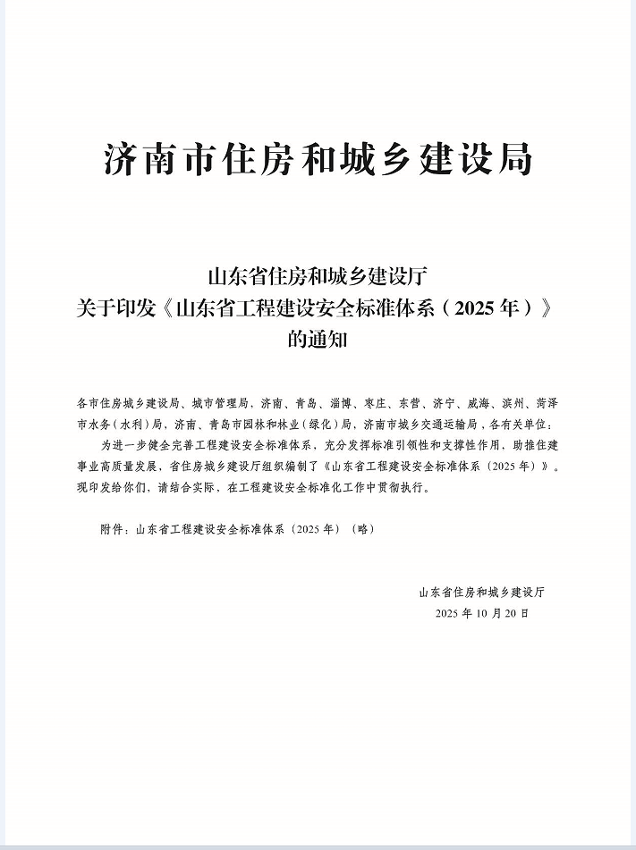 关于印发《山东省工程建设安全标准体系(2025年)》的通知